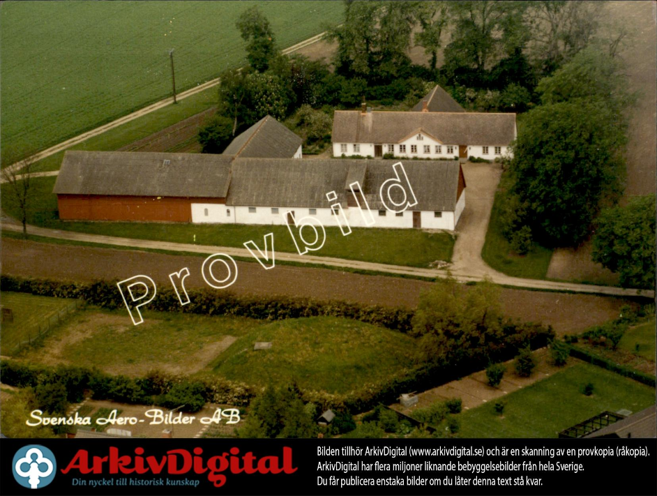 Det här flygfotot togs av gården 1984. Man kan nu se att villabebyggelse tillkommit på gårdens tidigare ägor.